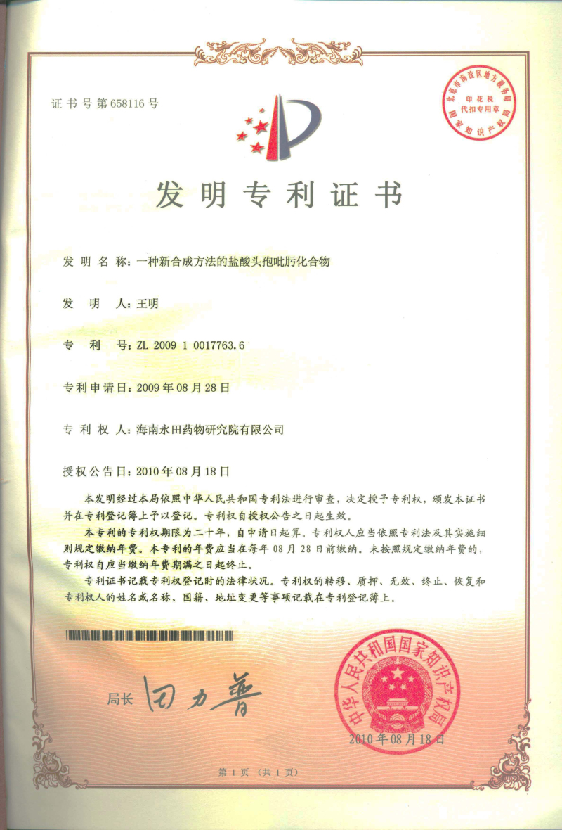 一種新合成方法的鹽酸頭孢吡肟化合物
