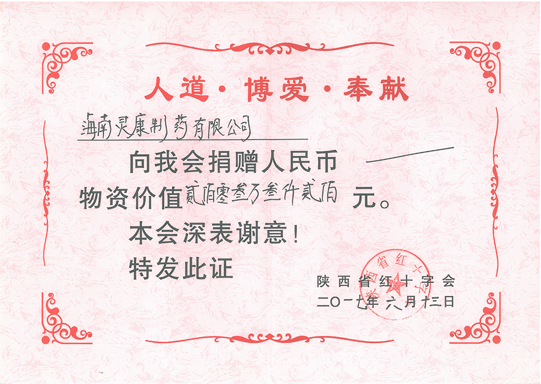 2017年陜西紅十字會捐贈