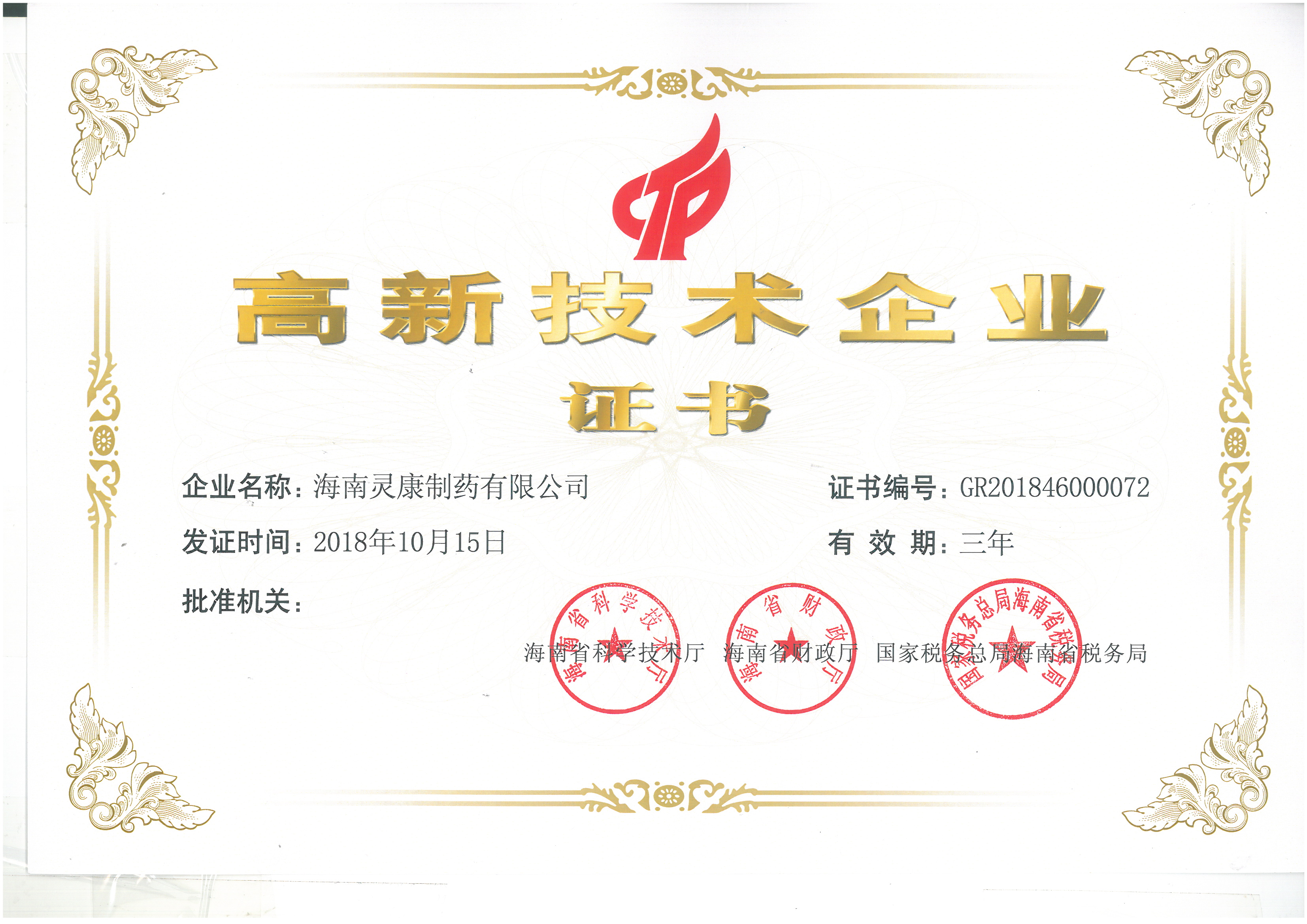 高新技術(shù)企業(yè)證書