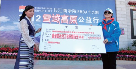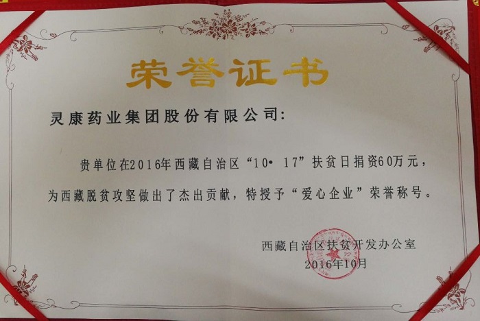 2012年10月13日,陶靈萍董事長參加了由長江商學(xué)院第十九期EMBA班學(xué)員——最高人民檢察院公訴廳副廳長、西藏自治區(qū)人民檢察院副檢察長侯亞輝倡導(dǎo)的“雪域高原公益行”活動(dòng)。陶靈萍董事長在西藏拉薩市城關(guān)區(qū)吉崩崗小學(xué)的捐贈(zèng)活動(dòng)上,代表靈康藥業(yè)集團(tuán)分別向西藏拉薩、山南和林芝地區(qū)捐贈(zèng)了價(jià)值127萬元、100萬元、100萬元的藥品,其中包括注射用炎琥寧、注射用頭孢唑肟鈉等,合計(jì)價(jià)值327萬元。