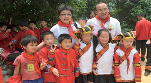 陶靈萍董事長與邊區(qū)孩子們合影(后排左一為陶靈萍董事長)